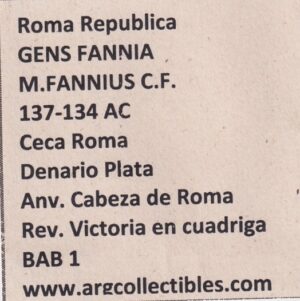 Roma Republica Moneda Denario 137 a.c Gens Fannia BB-1