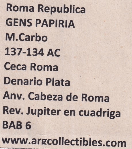 Roma Republica Moneda Denario 137 AC Gens Papiria Plata BAB-6