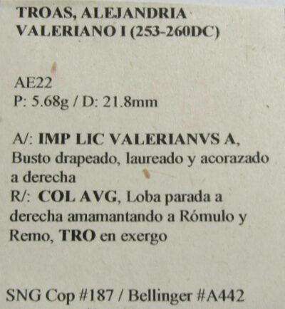 Roma Valeriano I 253 – 260 Alejandría De Troade Rómulo Y Remo J40