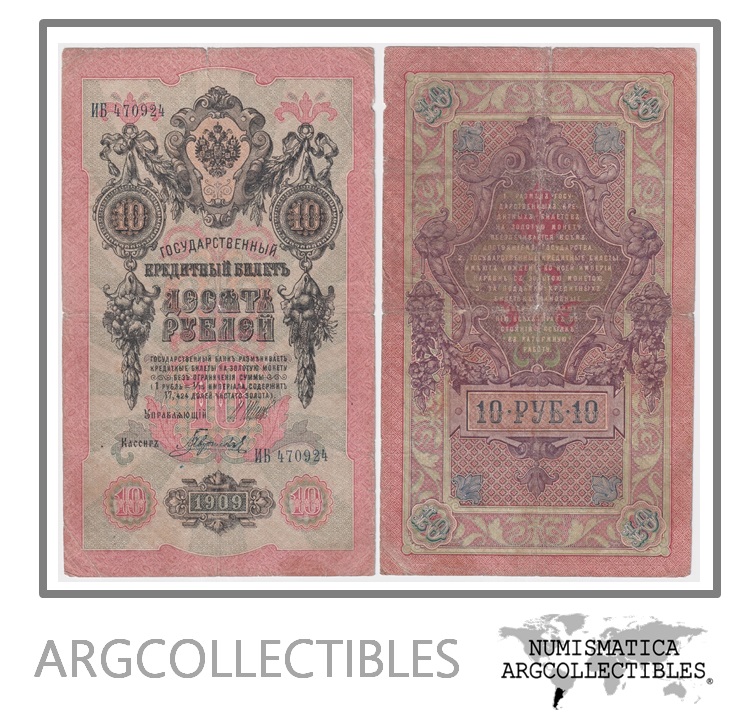 Rusia Billete 10 Rublos 1909 P-11c(6) F+ (Shipov-Gavrilov)