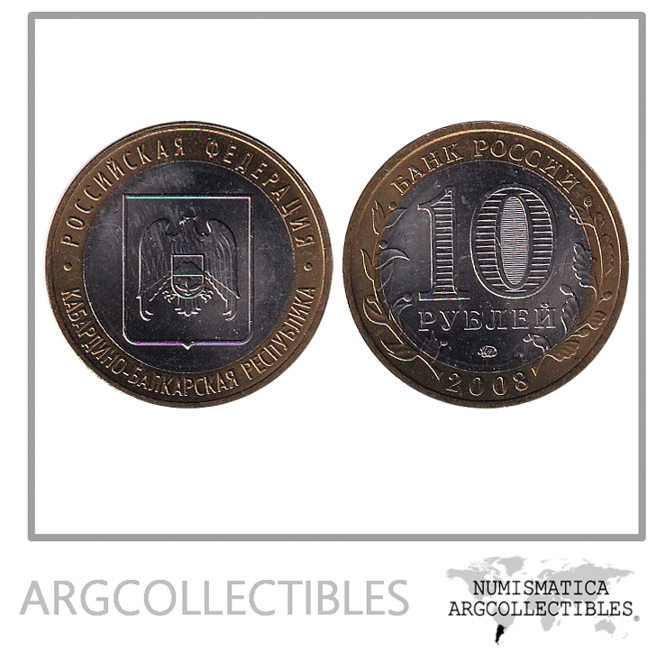 Rusia Moneda 10 Rublos 2008 Bimetalica Y-991 Kabardino Balkaria UNC