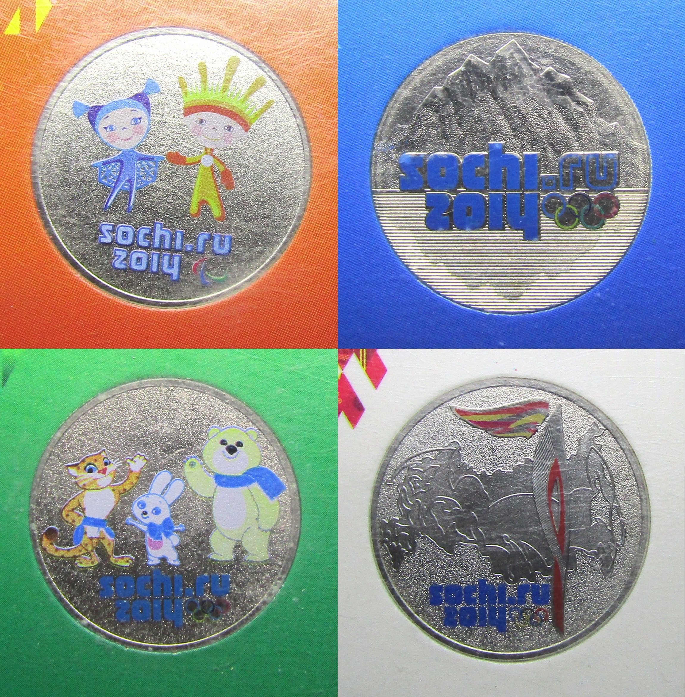 Rusia Set 4 Blister Monedas Olimpiadas Invierno Sochi 2014, 13, 12, 11 Color UNC