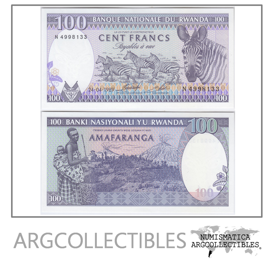 Rwanda Billete 100 Francos Año 1989 P-19 Unc