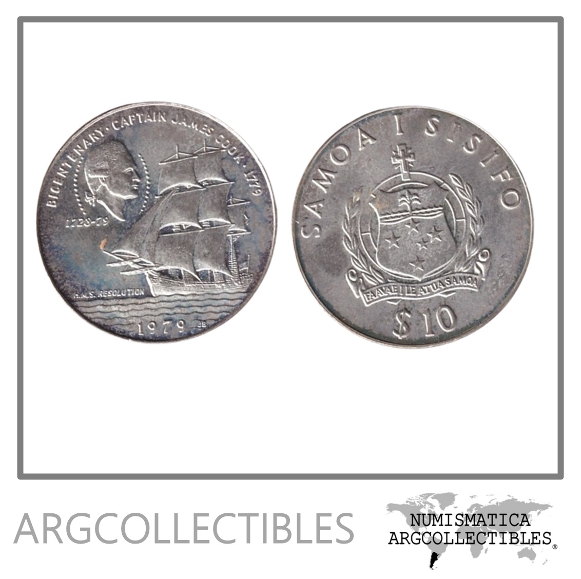 Samoa Moneda 10 Tala 1979 Plata 500 / 200 Aniversario James Cook KM-33 UNC