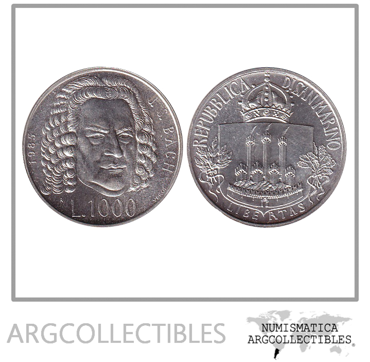 San Marino Moneda 1.000 Liras 1985 Plata 835 J.S Bach KM-183 UNC