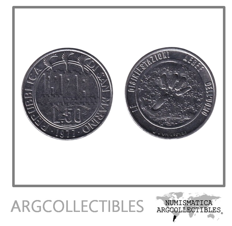 San Marino Moneda 50 Liras 1977 Acero KM-68 UNC