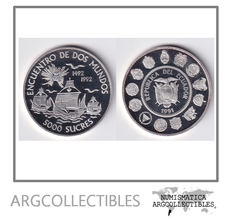 Ecuador Moneda 5.000 Sucres 1991 Plata 925 Encuentro de Dos Mundos Serie I KM-95 Proof