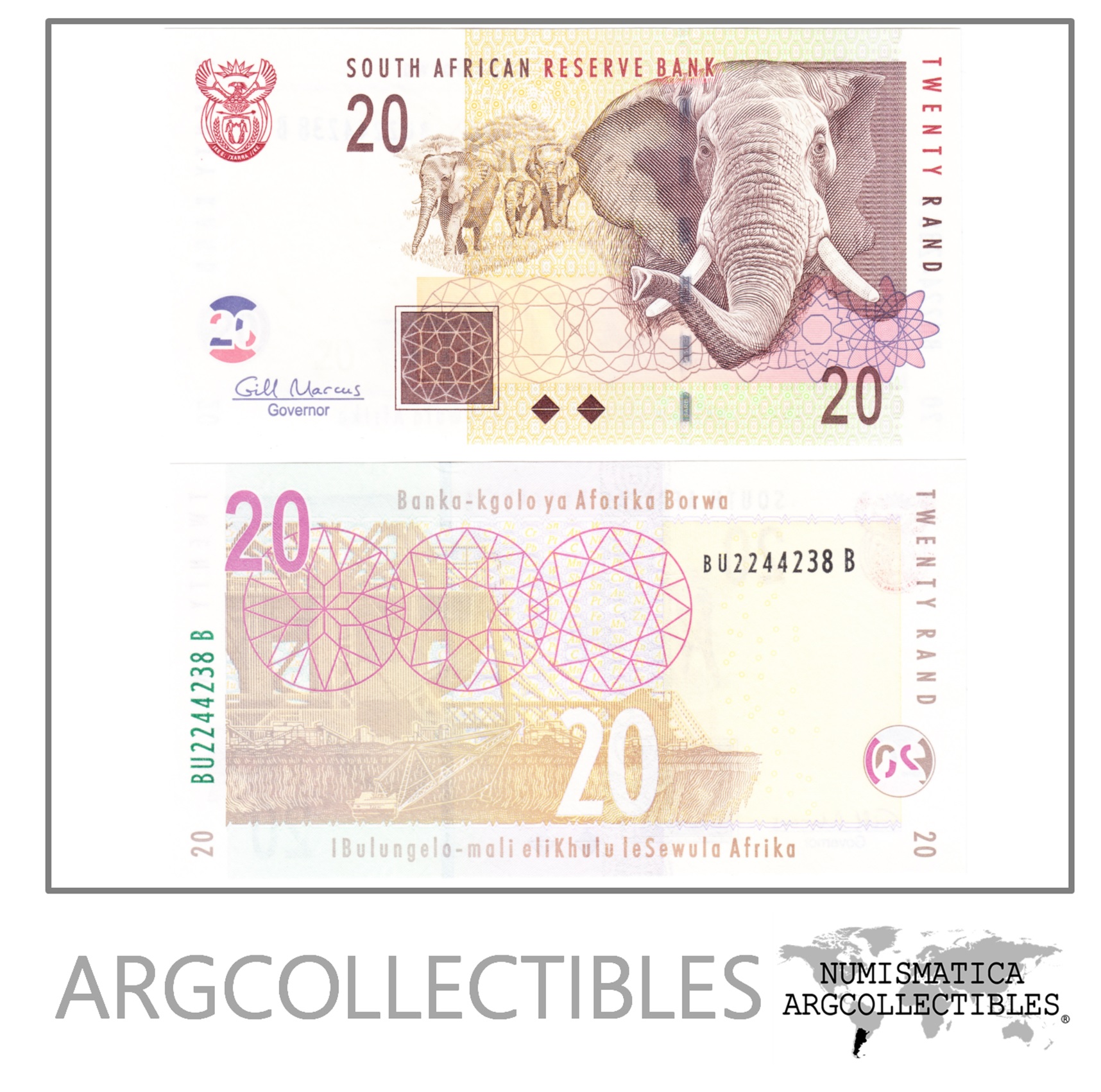 Sudafrica Billete 20 Rand Año 2009 P-129b Condicion Unc