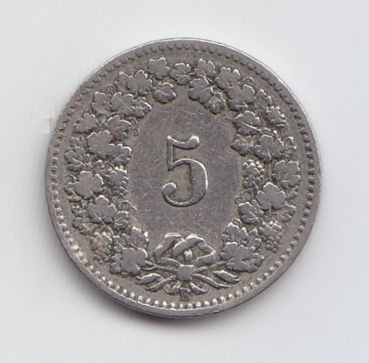 Suiza Moneda 5 Rappen Niquel 1906 Km-26 Vf