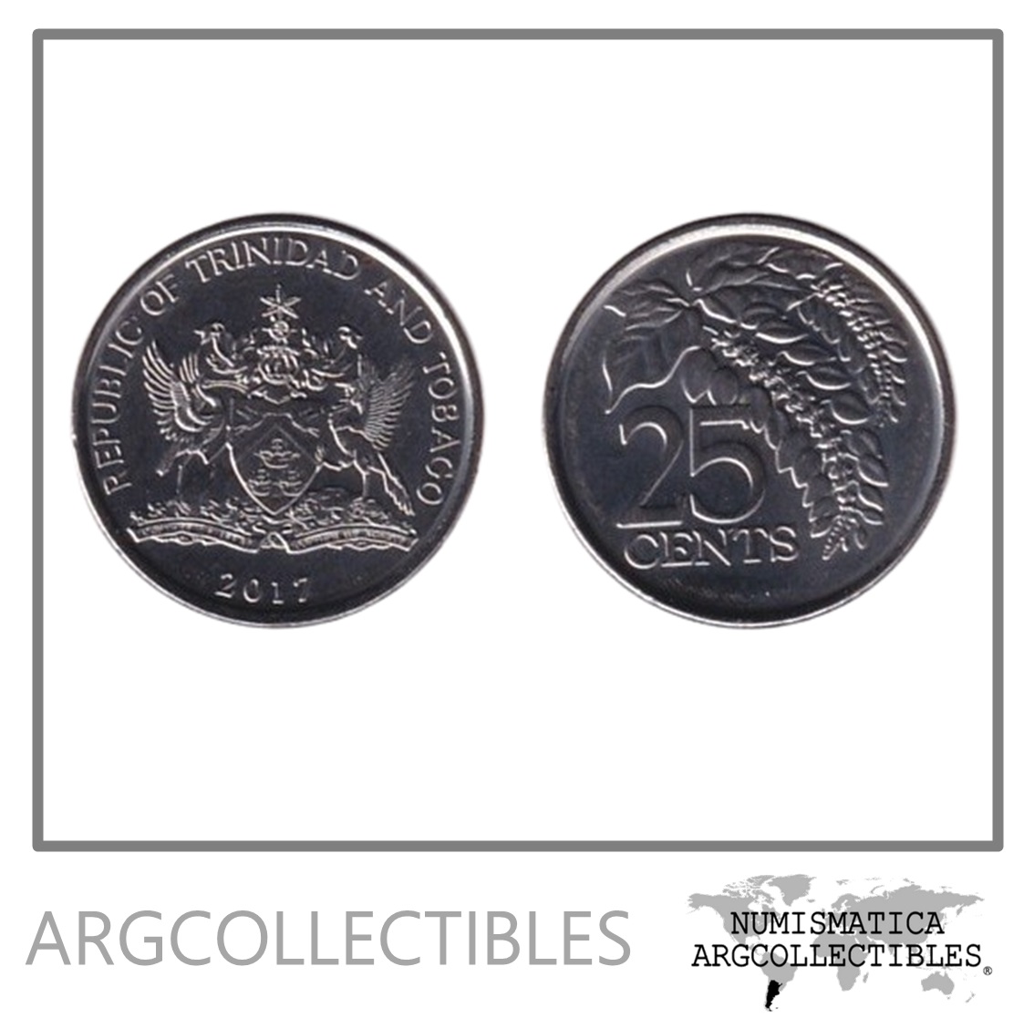 Trinidad y Tobago Moneda 25 Centavos 2017 Flores Acero UNC