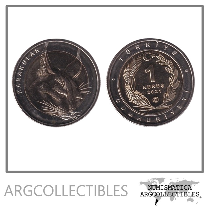 Turquia Moneda 1 Kurus 2021 Caracal Bimetalica UNC