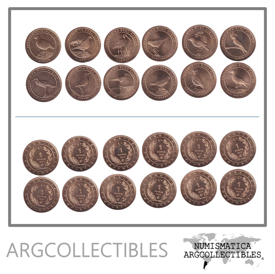 Turquia Set x 12 Monedas 1 Kurus Aves 2021 Laton UNC