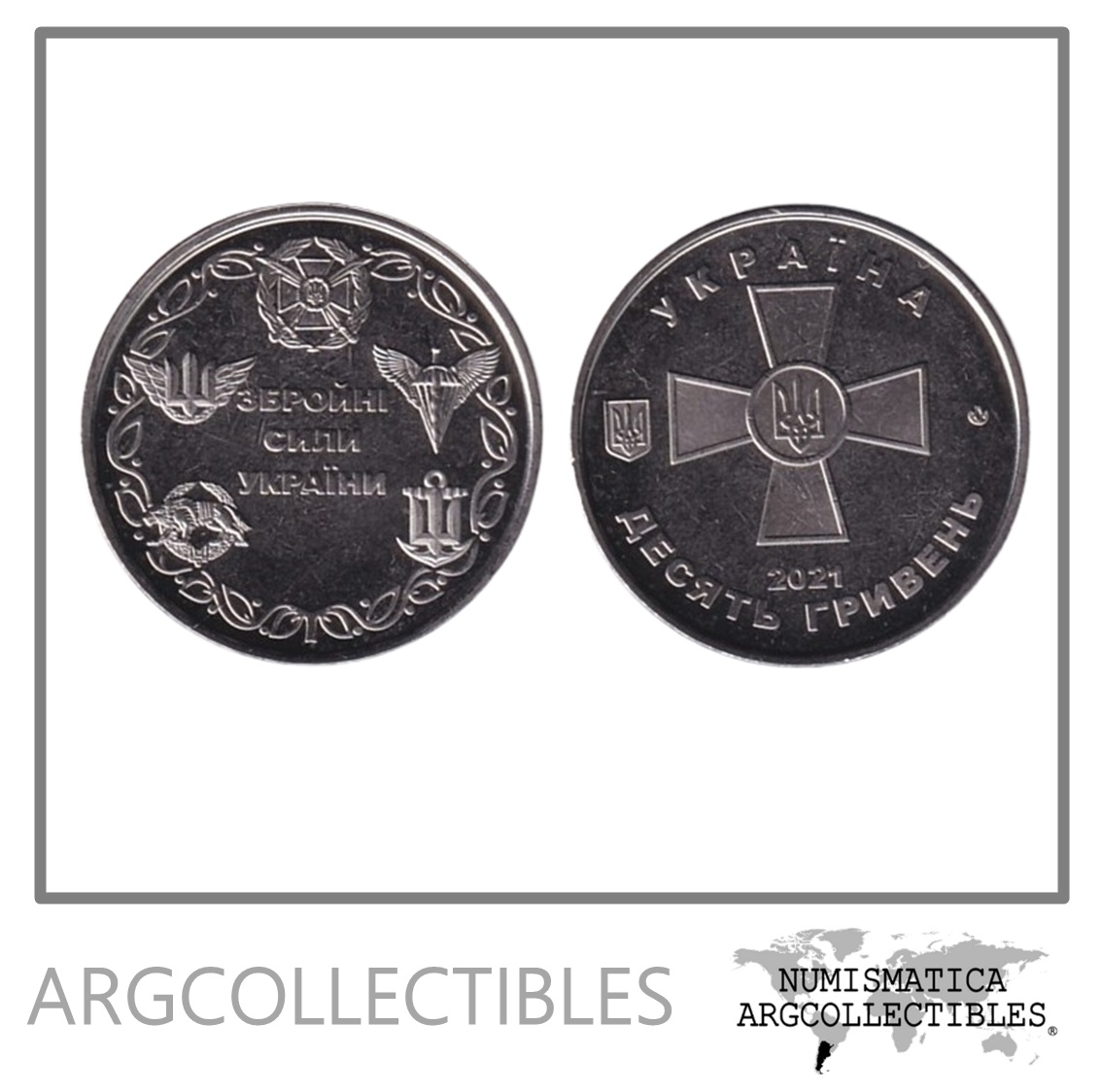 Ucrania Moneda 10 Grivnas 2021 Zinc Fuerzas Armadas UNC