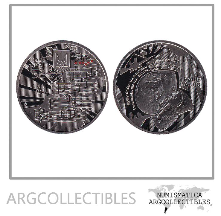Ucrania Moneda 5 Hryvnias 2022 Niquel Himno Color Proof