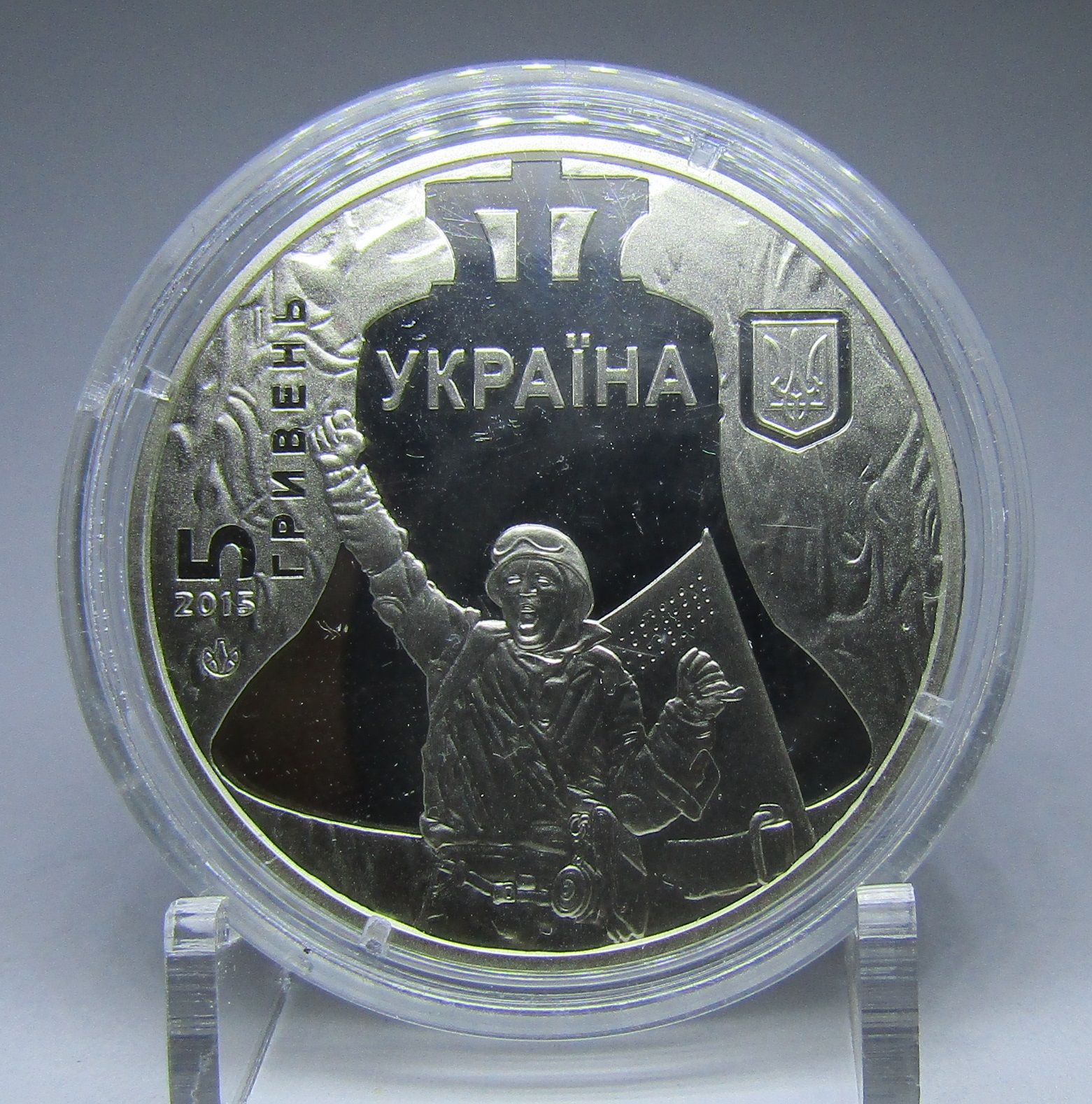 Ucrania Moneda a Color 5 Grivna 2015 Revolucion Dignidad KM-775 Proof