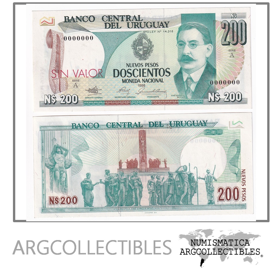 Uruguay Billete 200 Pesos Specimen 1986 P-66s UNC