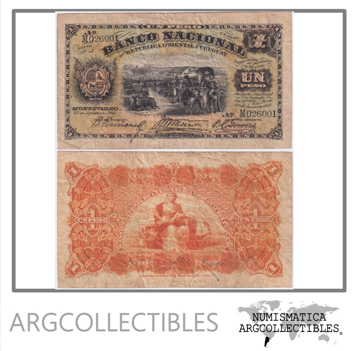 Uruguay Billete 1 Peso 1887 P-A90 VF+ (Banco Nacional)