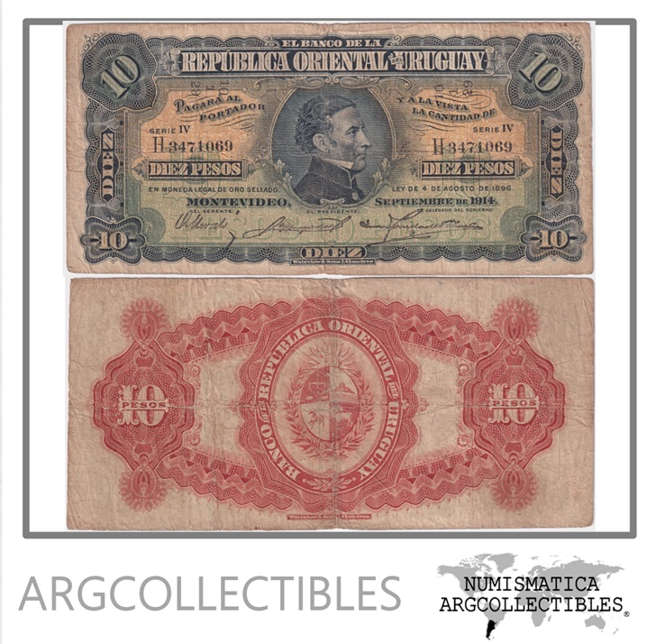 Uruguay Billete 10 Pesos 1914 P-11/CR-4.V-6 (H) F+