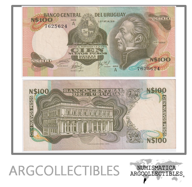 Uruguay Billete 100 Nuevos Pesos 1975 P-60/CR-22A VF (Serie A)