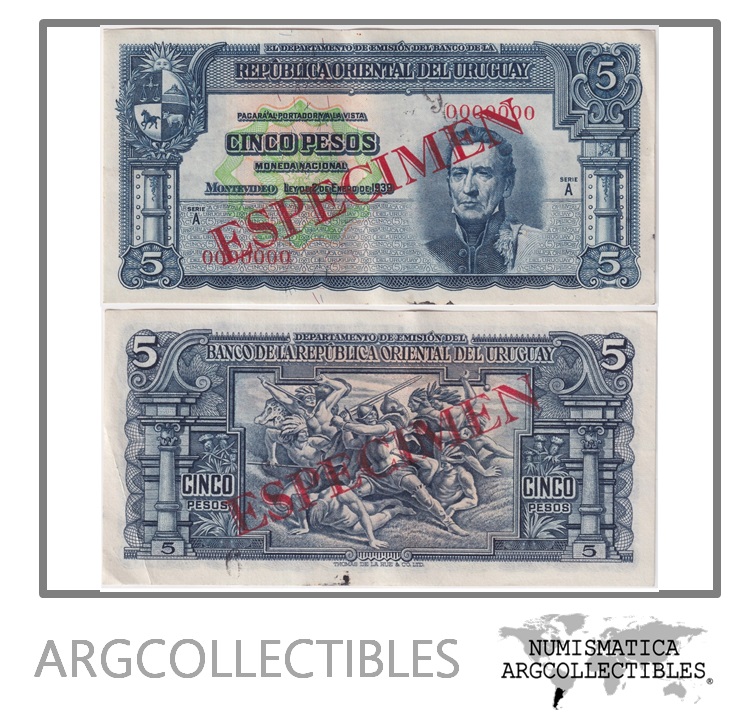 Uruguay Billete 5 Pesos 1939 P-36 XF+ (Specimen)