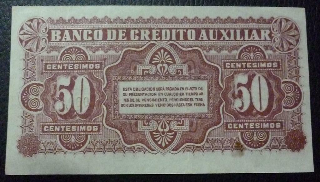 URUGUAY Billete 50 Centesimos, Pick S162R AU 1887 (Banco Credito Auxiliar)