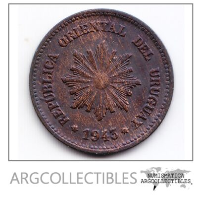 Uruguay Moneda 2 Centesimos Cobre 1943 Km-20a Au