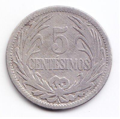 Uruguay Moneda 5 Centesimos Niquel Año 1909 Km-21 Vf- / F+