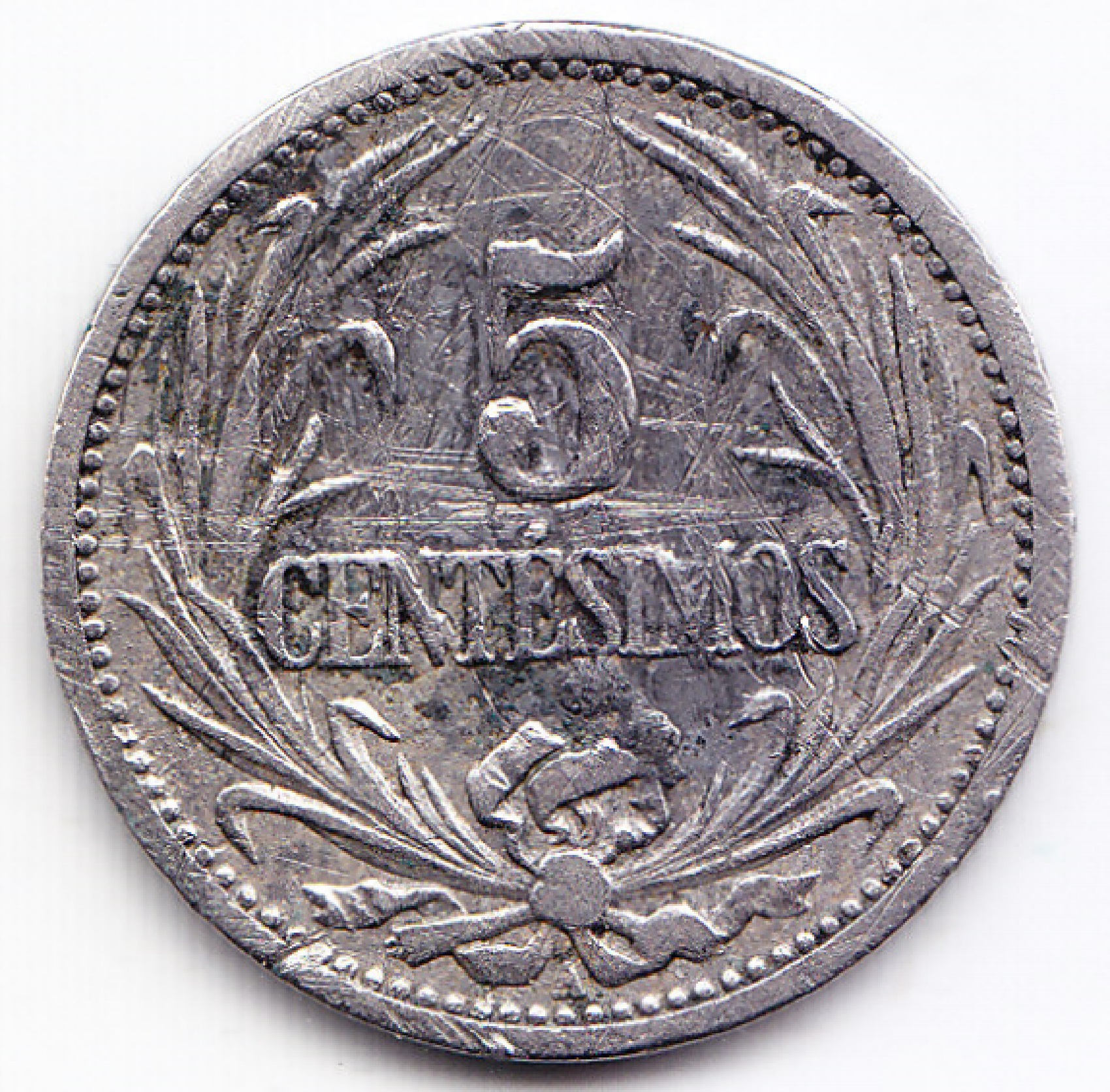 Uruguay Moneda 5 Centesimos Niquel Año 1901 Km-21 Vf-