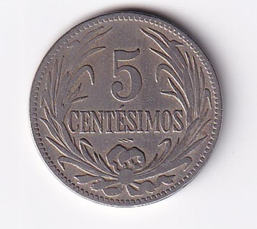 Uruguay Moneda 5 Centesimos Niquel Año 1924 Km-21 Vf