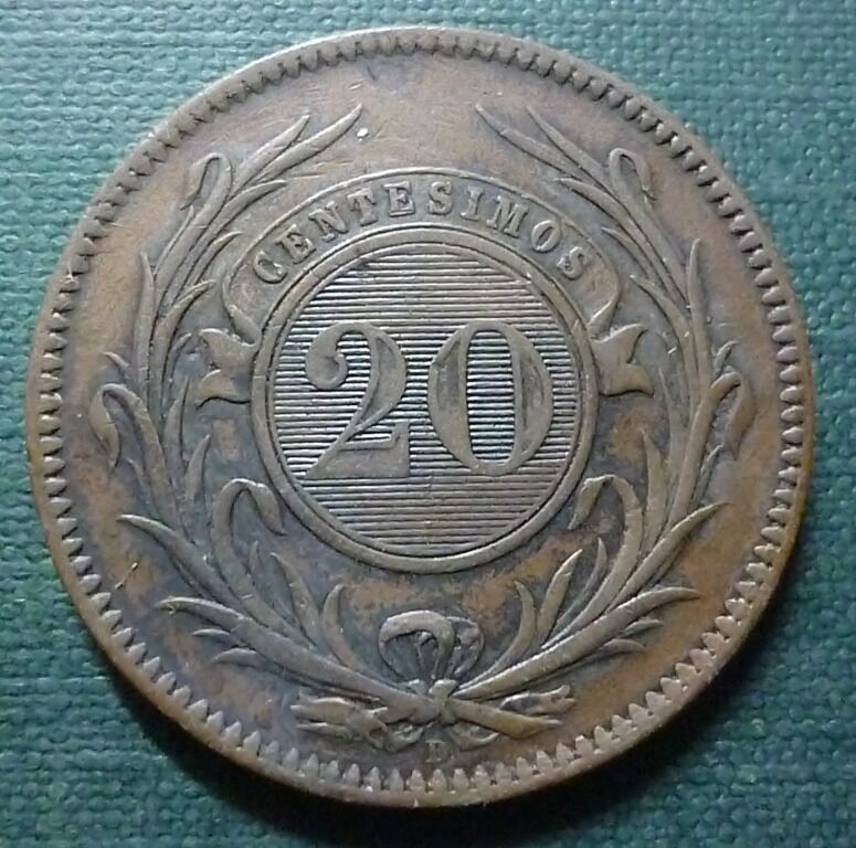URUGUAY Moneda de Cobre20 Centesimos, KM9 XF 1857