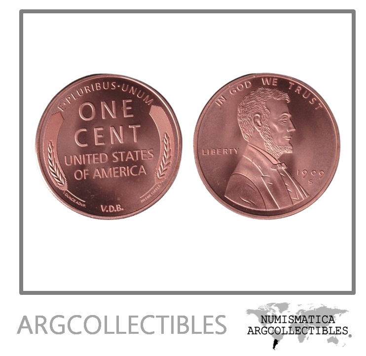 Usa Moneda 1 Centavo 1909(2009) S Onza de Cobre 999 Lincoln UNC