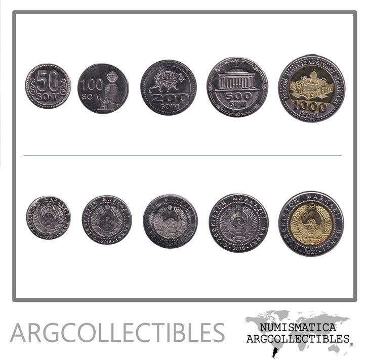 Uzbekistan Set x 5 Monedas 50-100-200-500-1.000 Som 2018-2022 Acero-Bimetalica UNC