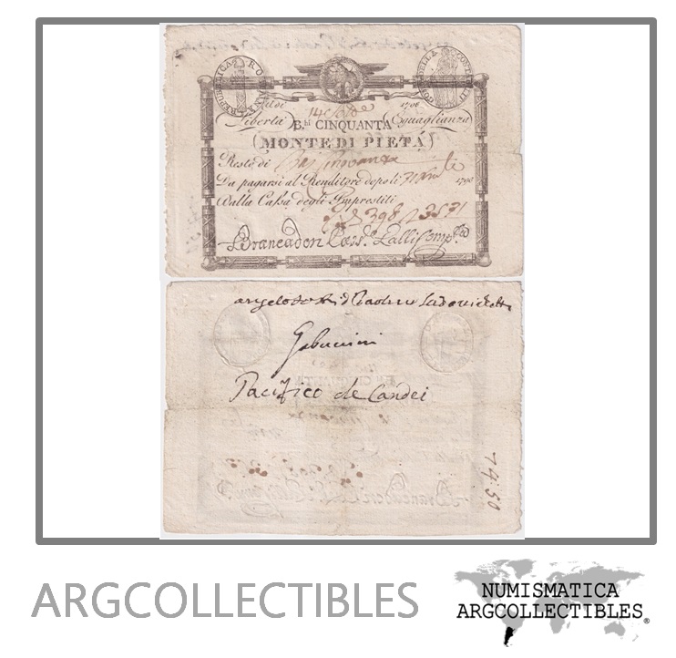 Vaticano Billete 50 Baiocchi 1798 P-S-528a VF (Monte di Pieta)