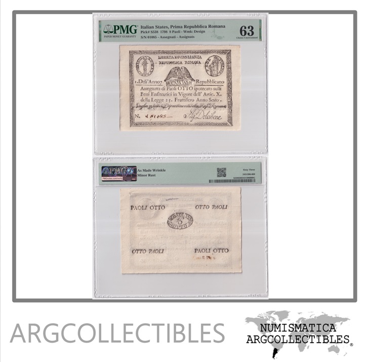 Vaticano Billete 8 Paoli 1798 P-S-538 UNC (Certificado)