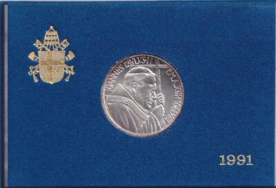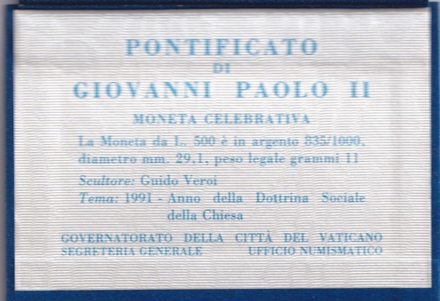 Vaticano Blister Moneda 500 Liras Plata 835 1991 Doctrina Social KM-227 Unc