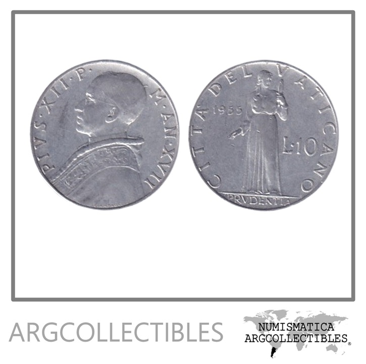 Vaticano Moneda 10 Liras 1955 Papa Pio XII Aluminio KM-52 UNC