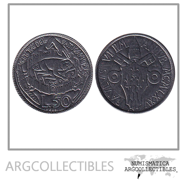 Vaticano Moneda 50 Liras 1975 Acero KM-129 Año Santo UNC
