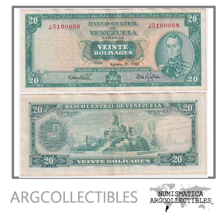 Venezuela Billete 20 Bolivares 1967 P-46a VF+