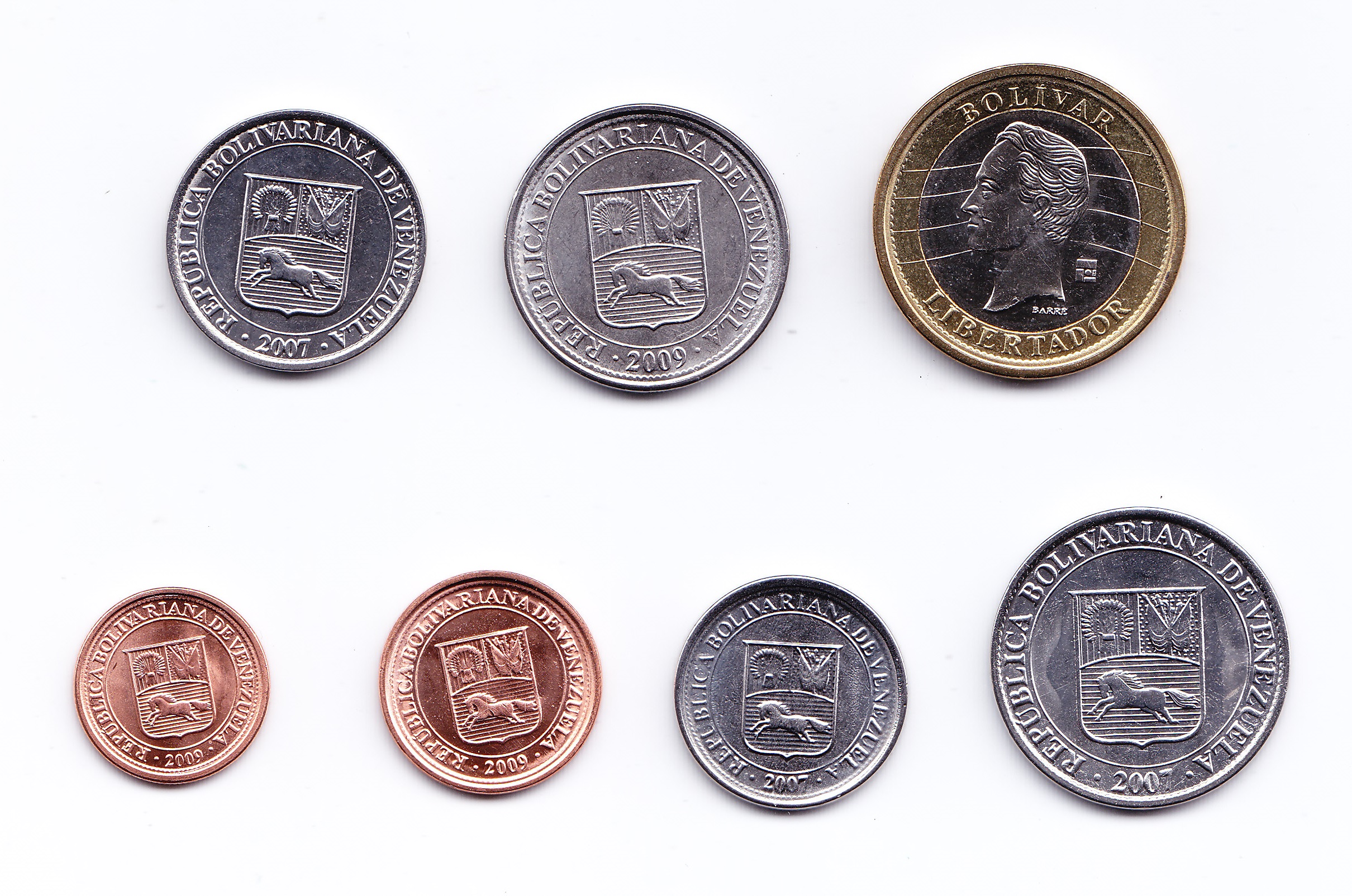 VENEZUELA SET X 7 Monedas 1,5,10,25,50,12½ Centimos & 1 Bolivar UNC 2007-2009