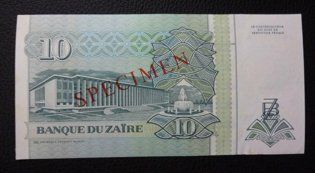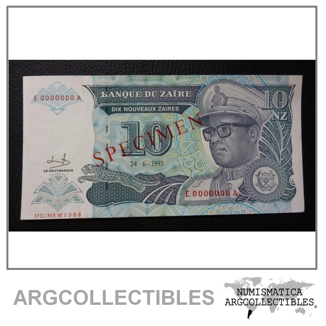 ZAIRE Billete 10 Nuevos Zaires, Pick 54s UNC 1993 – Especimen (0380)