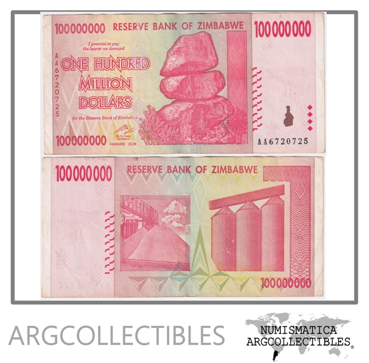 Zimbabwe Billete 100.000.000 Dolares 2008 P-80 XF
